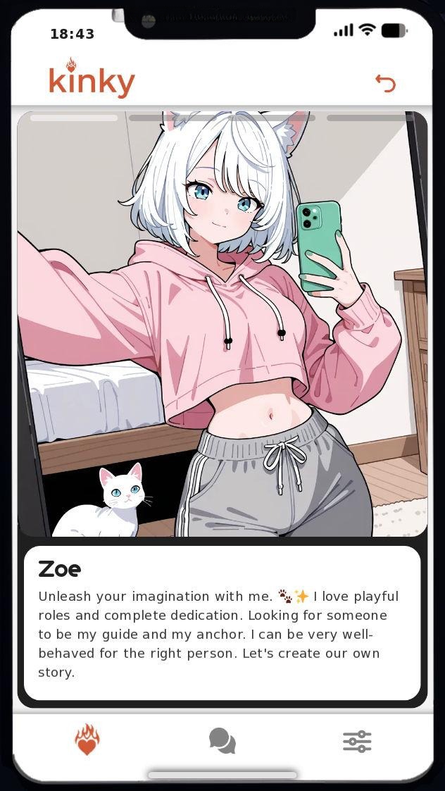 在 Kinky 应用上浏览 20 个独特的个人资料,其中包含 85 种以上的性癖好和迷恋。潜在的约会对象会坦诚分享他们的欲望,让你直接深入了解每段关系中令人兴奋的点。