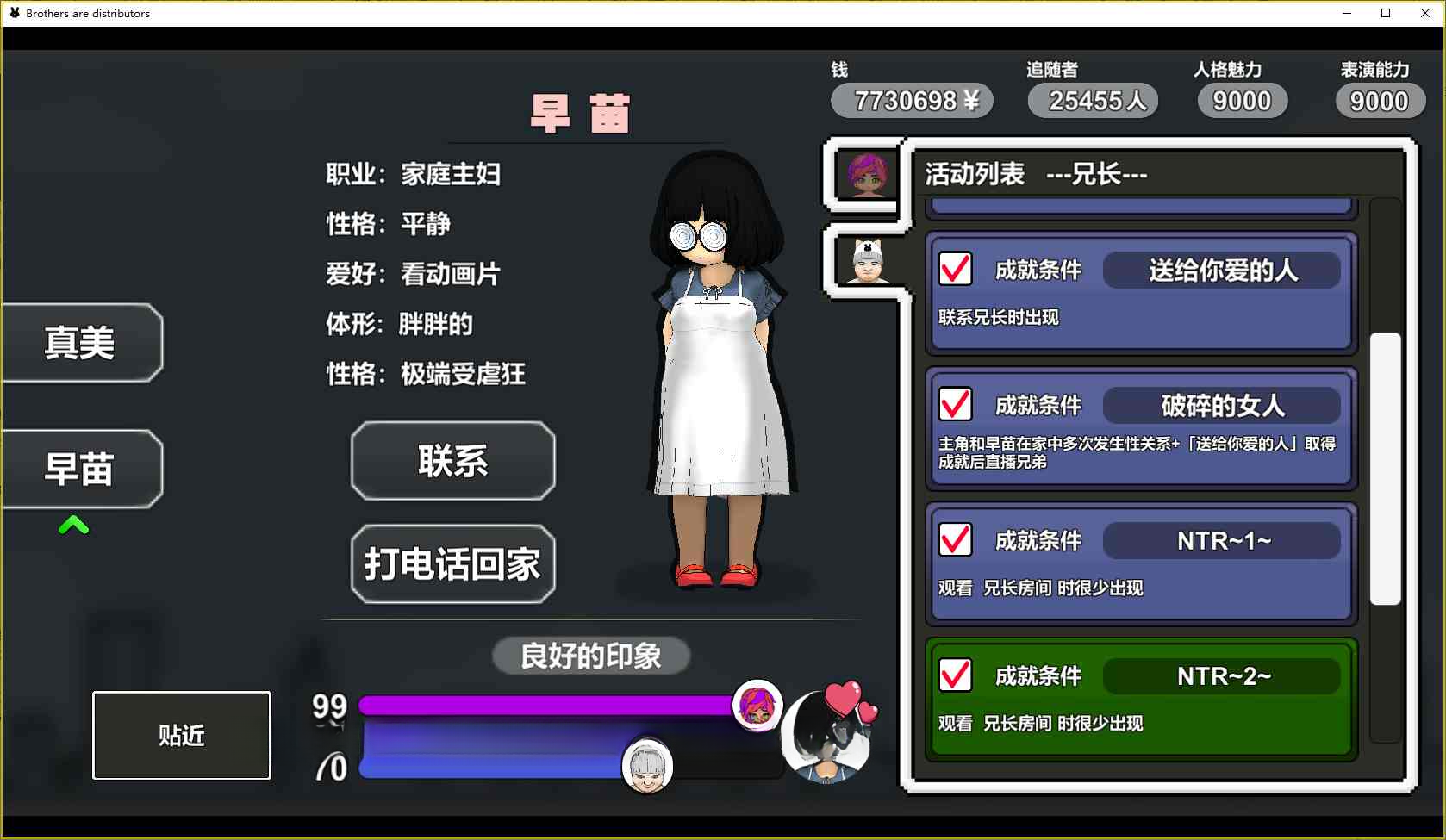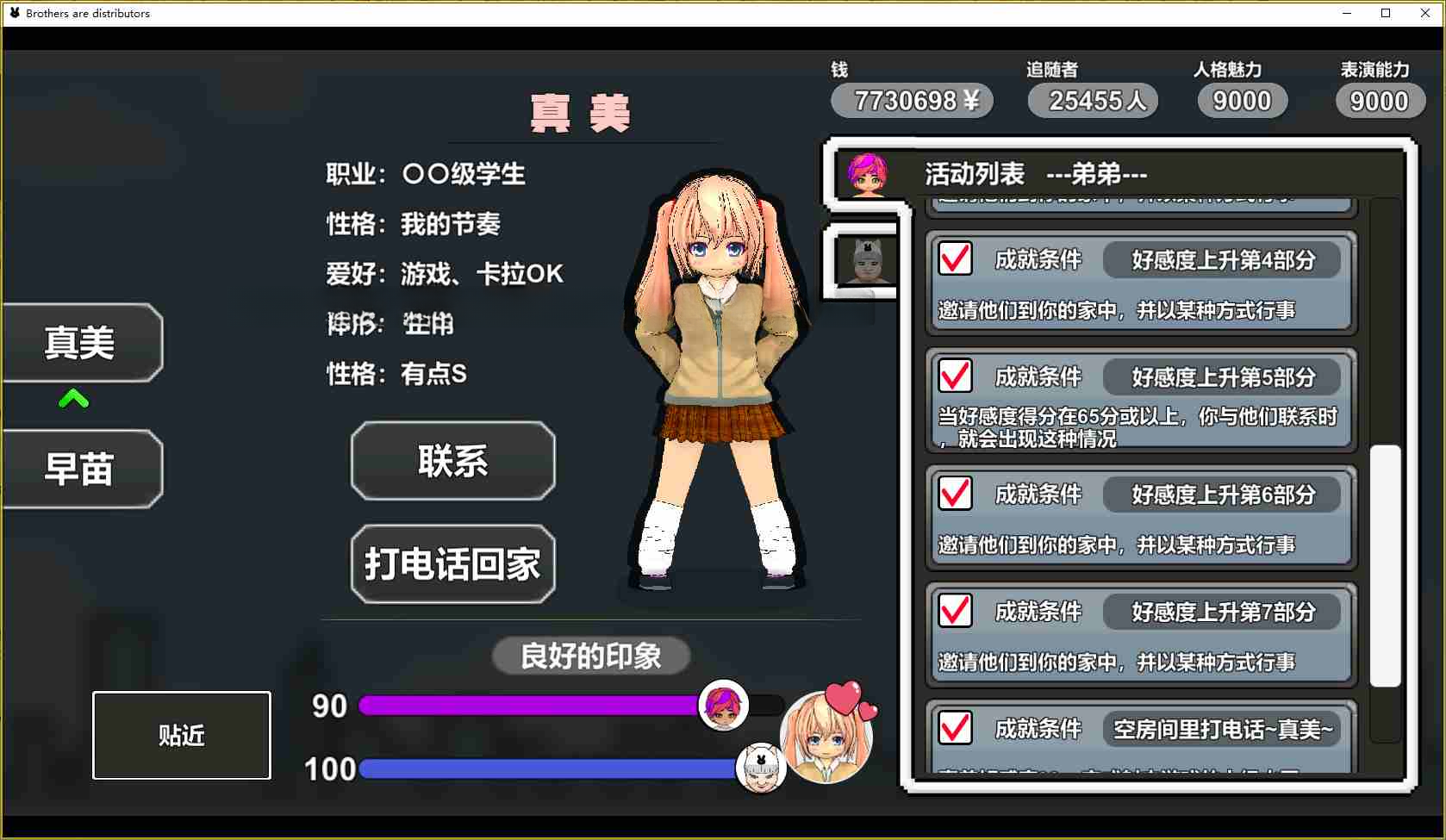 操作主角「马霍鲁」,设法将粉丝邀约回家。