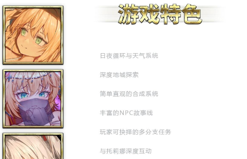 在充满细节的世界中旅行,遇见形形色色的角色,几乎每个人都有自己的故事和任务。 通过制作物品和升级装备来提升实力。 与镇上的居民交谈,搜集任何可能帮助托莉娜的信息,只是她的病情会随着体内魔血的觉醒不断恶化。 踏出小镇边界,寻找稀有材料,探索地下城,与怪物战斗。 但是,在经历了一天的冒险之后,别忘了回来照顾托莉娜日益增长的对魔力的渴望。